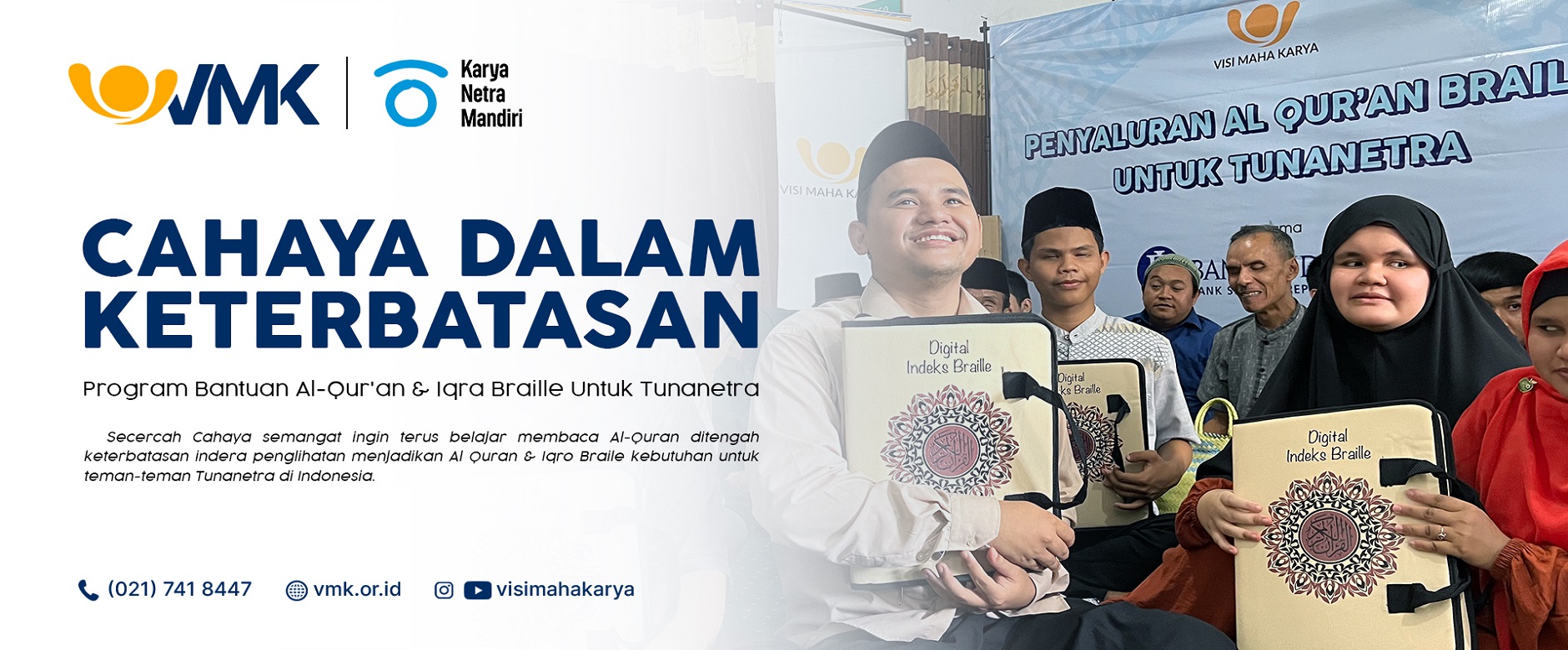 Selain sebagai bentuk perhatian kita terhadap keberadaan sahabat difabel tunanetra, pemberian Al-Quran Braille ini adalah sebagai bentuk apresiasi kita terhadap semangat mereka yang juga ingin meningkatkan kualitas ibadahnya selama bulan suci Ramadhan.